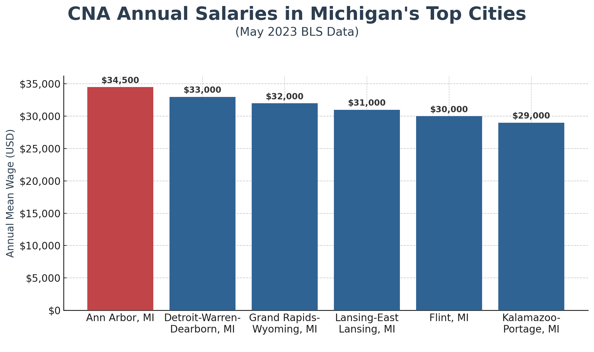 Avg Annual CNA Salary | $34,600 | $62,340 |